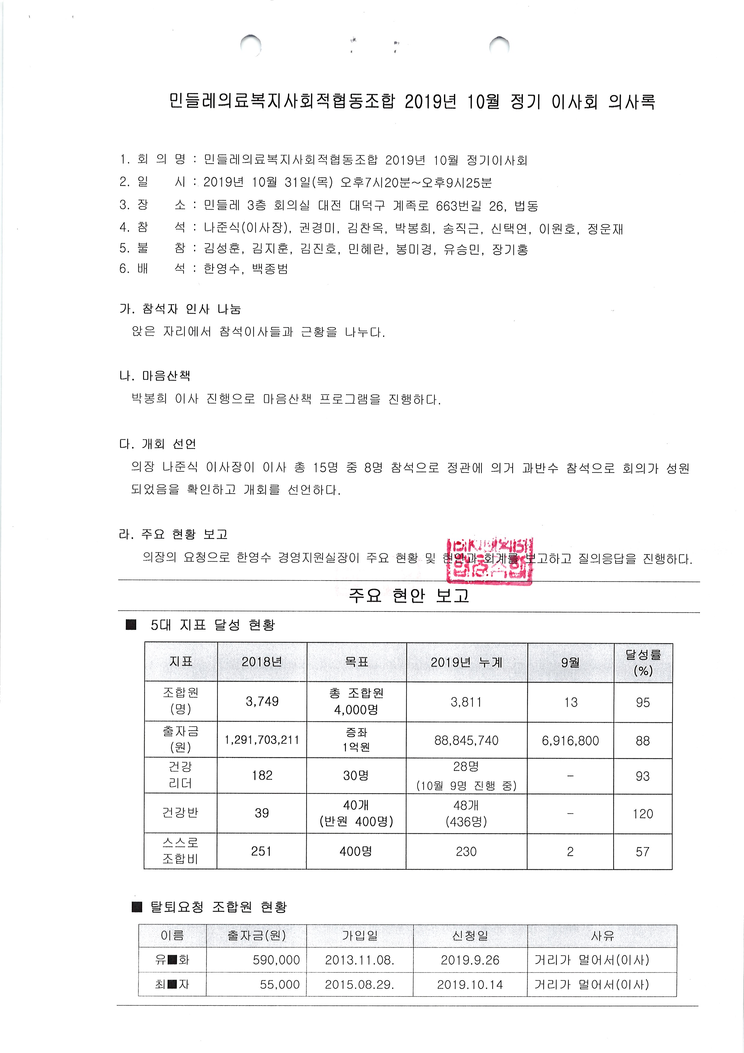 [2019-10] 정기이사회 결과보고
