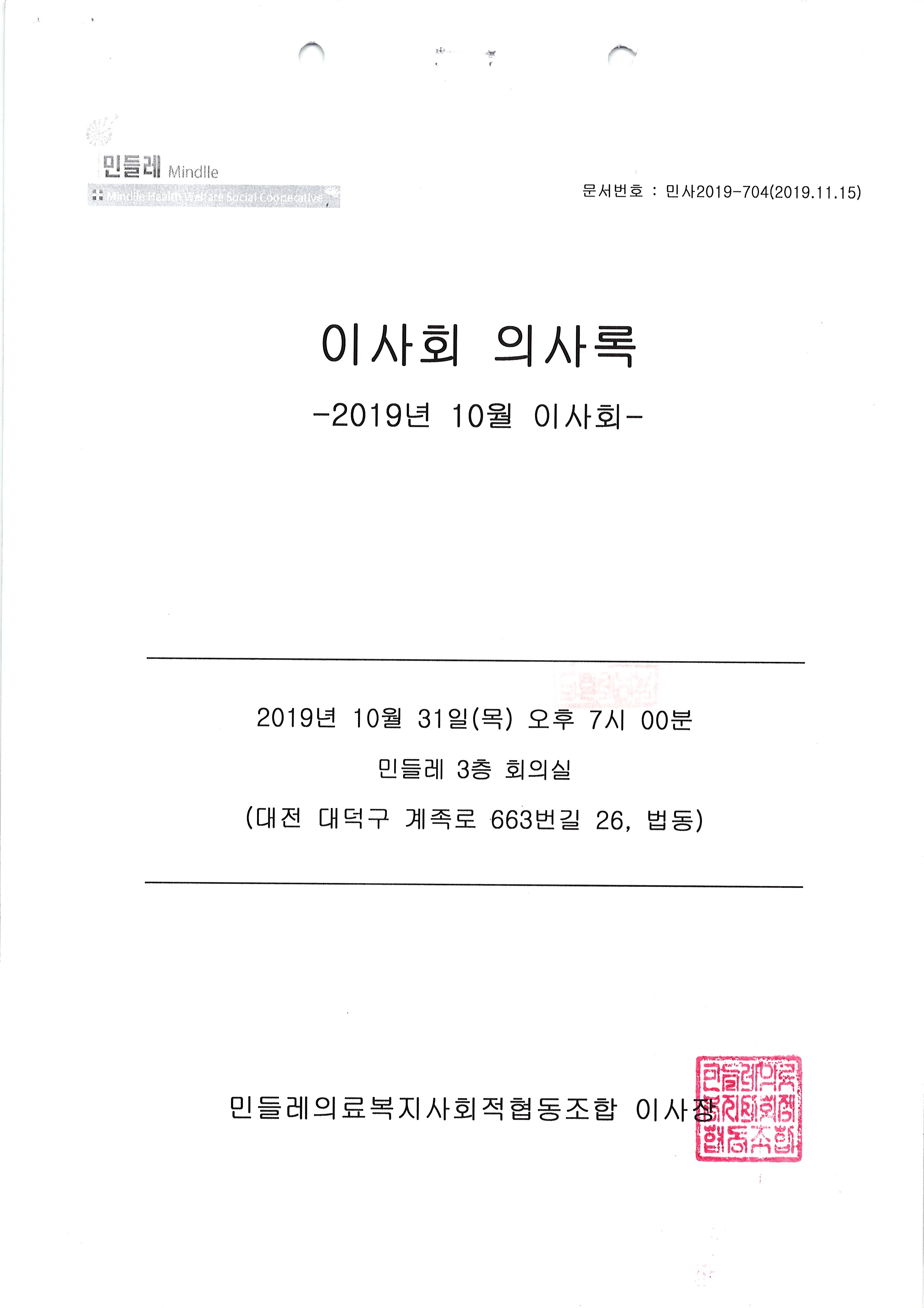 [2019-11] 임시이사회 결과보고