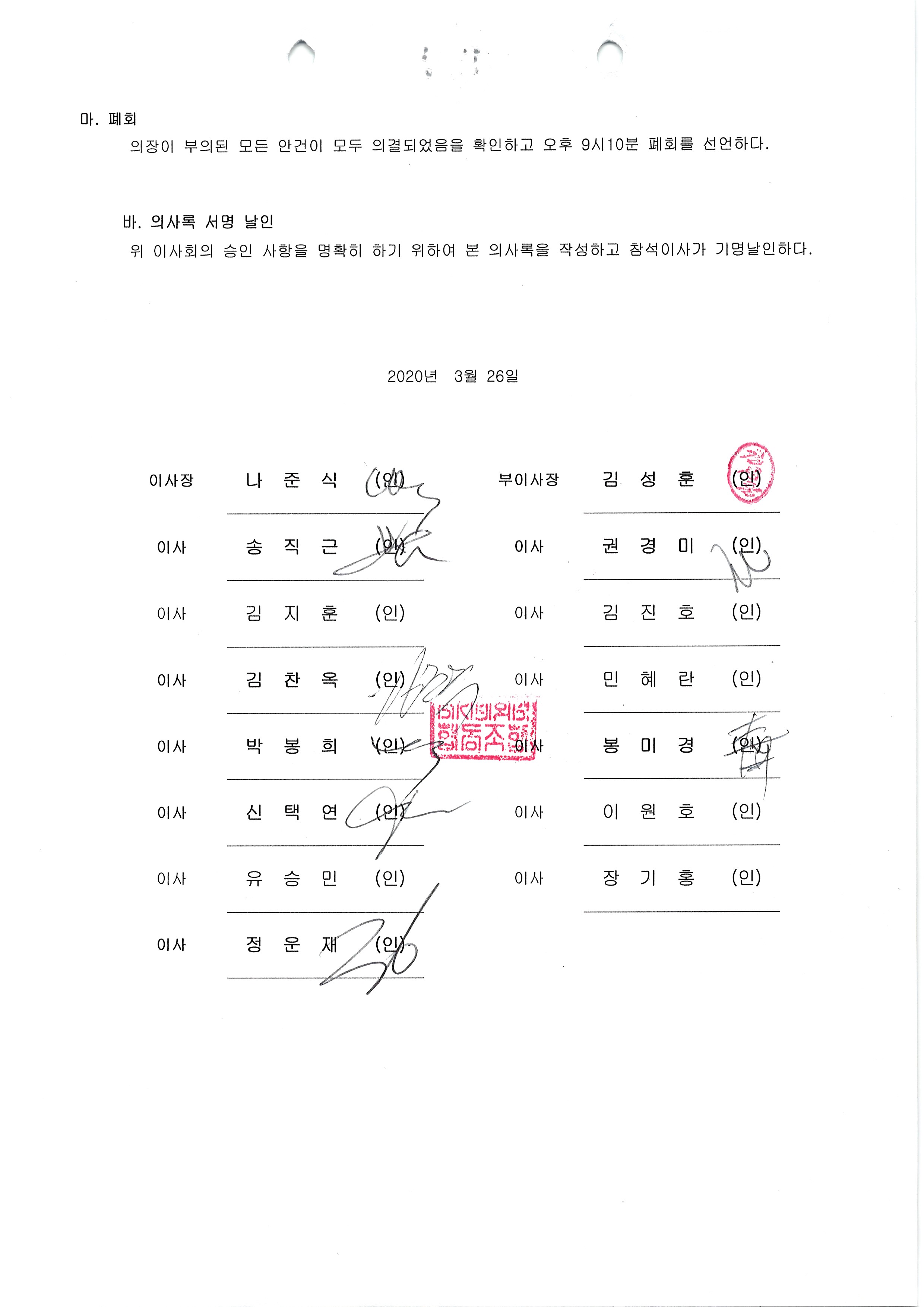 [2020-03] 정기이사회 결과보고