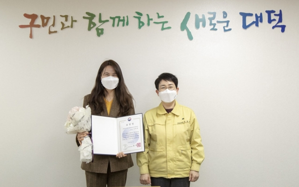 국현정 민들레의료복지사회적협동조합 센터장, 보건복지부장관 표창 수상 국현정 센터장은 2020년 보건복지부에서 공모한 사회서비스분야 사회적경제 육성지원사업에 응모해 선정된 ‘경증치매노인 웰라이프 돌봄서비스’사업을 성실히 추진한 공적을 인정받았다. 해당사업으로 대덕구는 우수기관으로 선정돼 기관표창을 수상한 바 있다.