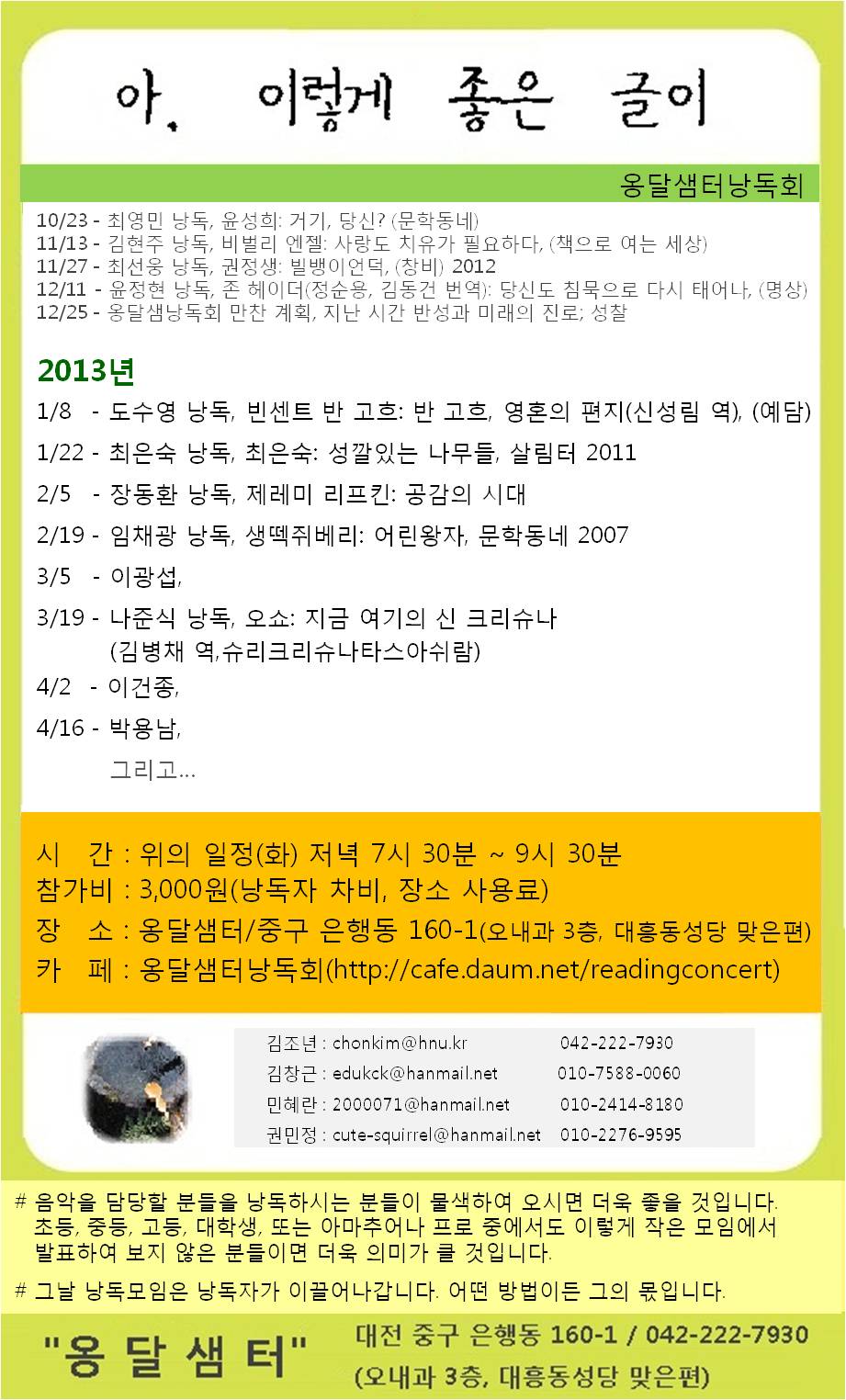 옹달샘터 낭독회에 오세요.