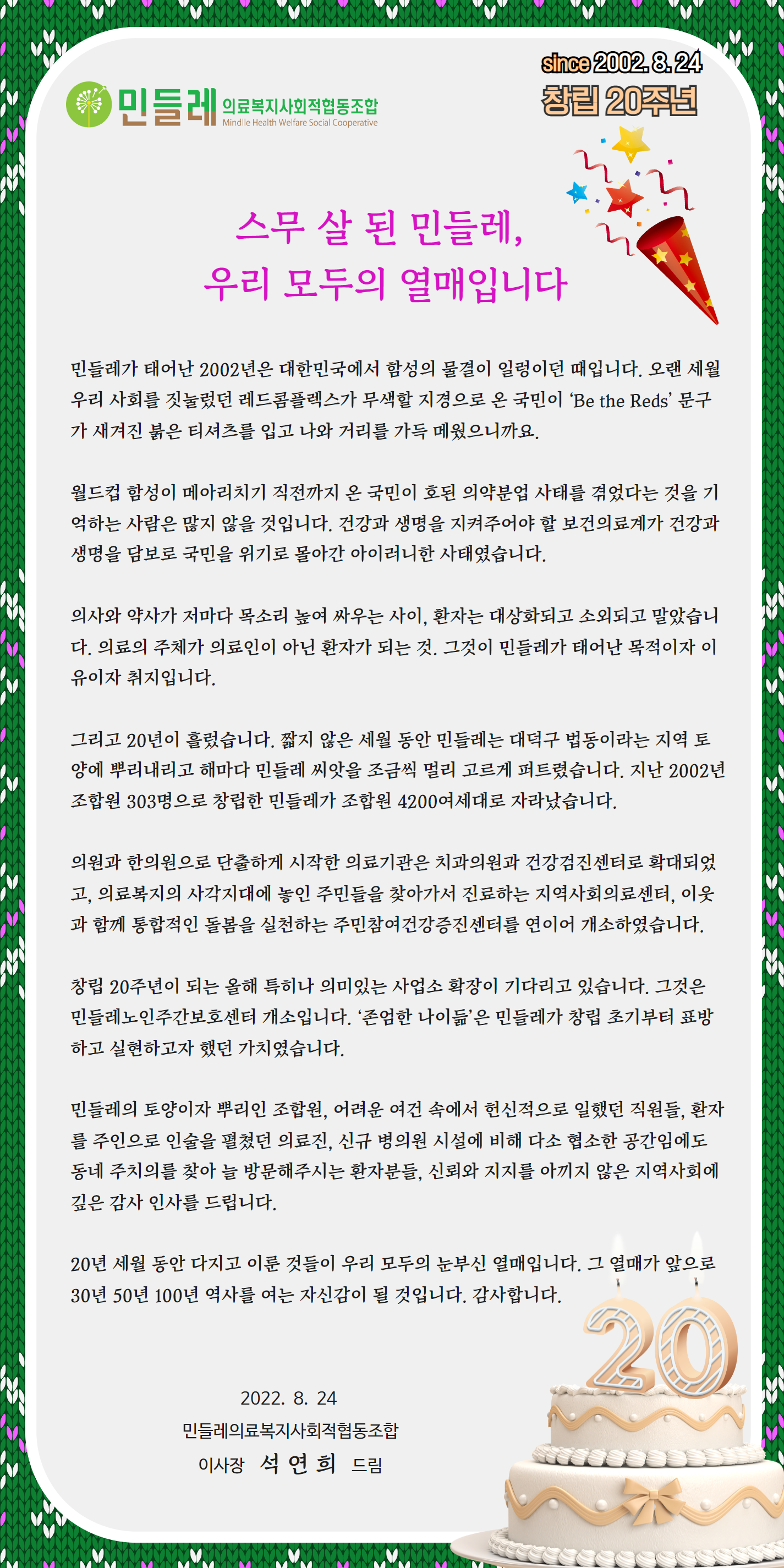 [창립20주년] 이사장 기념사