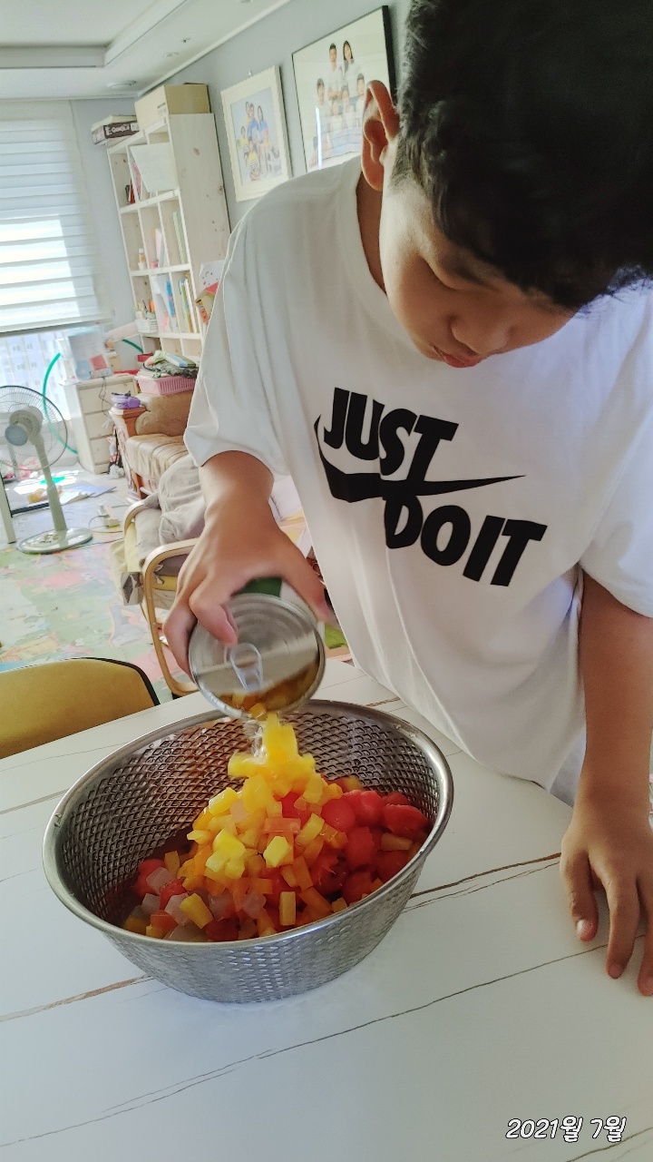 가장 덥다는 중복입니다. 아이들과 함께 시원하게 먹을 수 있는 수박화채 만들기 시간을 가졌습니다. 같이 모여서 하면 좋았겠지만 각자 집에서 아이들과 함께 만들었습니다. 아이들은 사이다만 넣은것이 더 맛나다고 하네요. 어른들은 우유를 약간 넣은 것에 한표를 주었습니다. 더운 여름 모두 건강하게 나길 기원합니다.